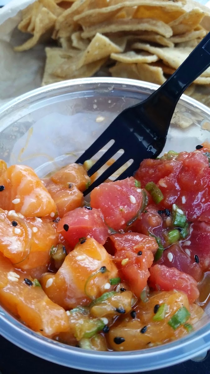 Solid fish joint serving up fresh poke bowls, tacos, and burritos. Two public Parking lots are available. One cost $10 for the hour and the other is free. Inside there is a good amount of seats but the place gets packed quickly. Expect to look for seating. Outside patio seating plus courtyard increases chances. They have a bar with limited seats. A seafood market selling fresh fish by the lb. The line was coming out the door but went rather quickly. You order at the counter, and are given a number. Pricing wise it’s premium. Poke Bowl is a hit. I can see why people rave about it. Guac was absolutely delicious. Food is fresh. But it’s not delivered to your table all at once which caused us issues. Missing fish tacos. By the time I got them they were cold :( They were just okay as the breading/seasoning were lackluster. Missing garlic crisps for poke bowl. Had to ask for them as well. The crisps really changed the depth of the bowl and had excellent flavor. Tip: Get rice as the base instead of the salad. 4/5 stars. Minus one star for missing essential order items.